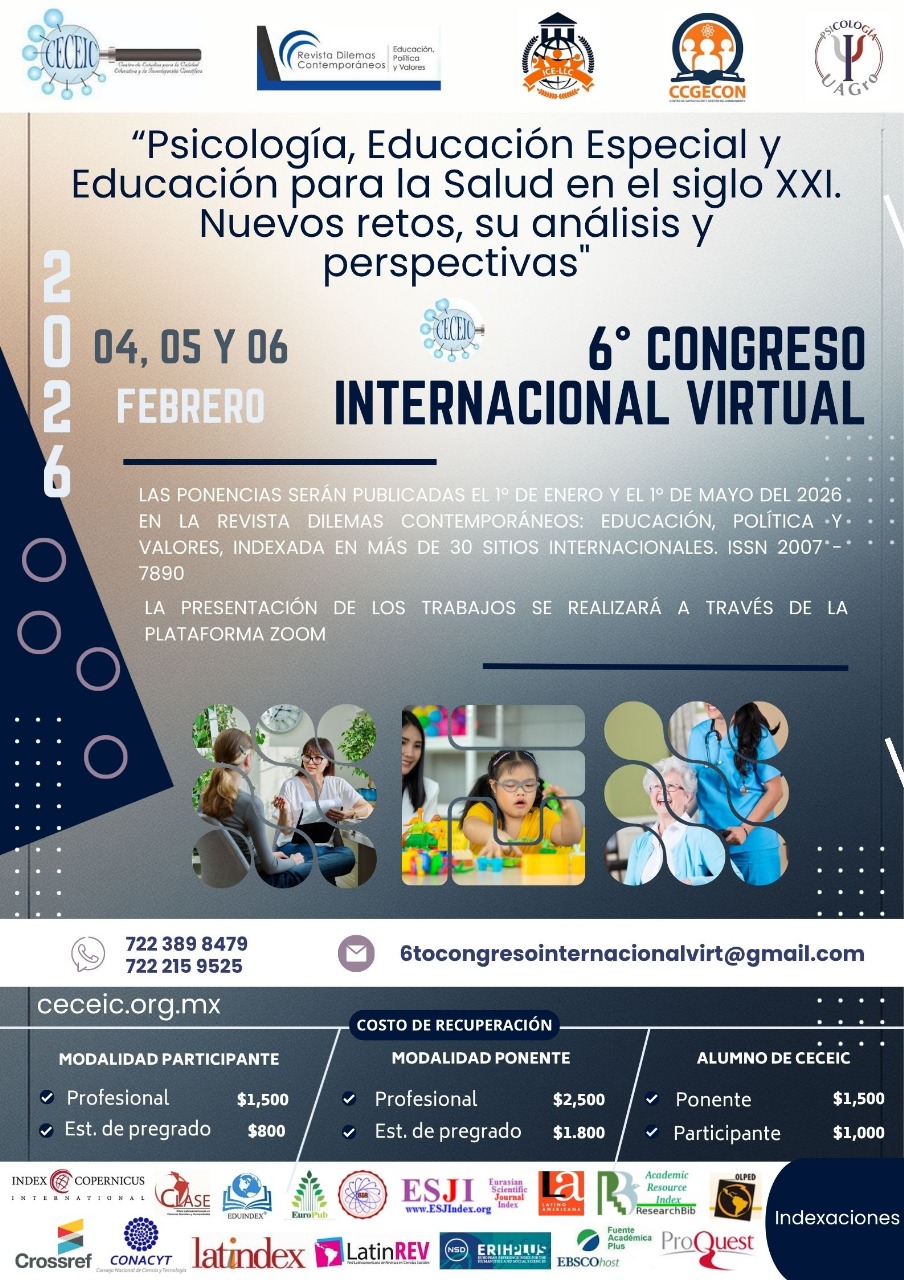 6to Congreso Internacional Virtual "Psicología, Educación Especial y Educación para la Salud en el siglo XXI. Nuevos retos, su análisis y perspectivas".